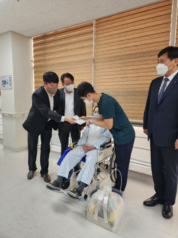 "저희 회사도 가족처럼 열심히 물심양면으로 도와줄테니까 절대 희망을 잃지 말고 끝까지 재활 잘해서 훌륭한 부모님이 됐으면 좋겠습니다."
