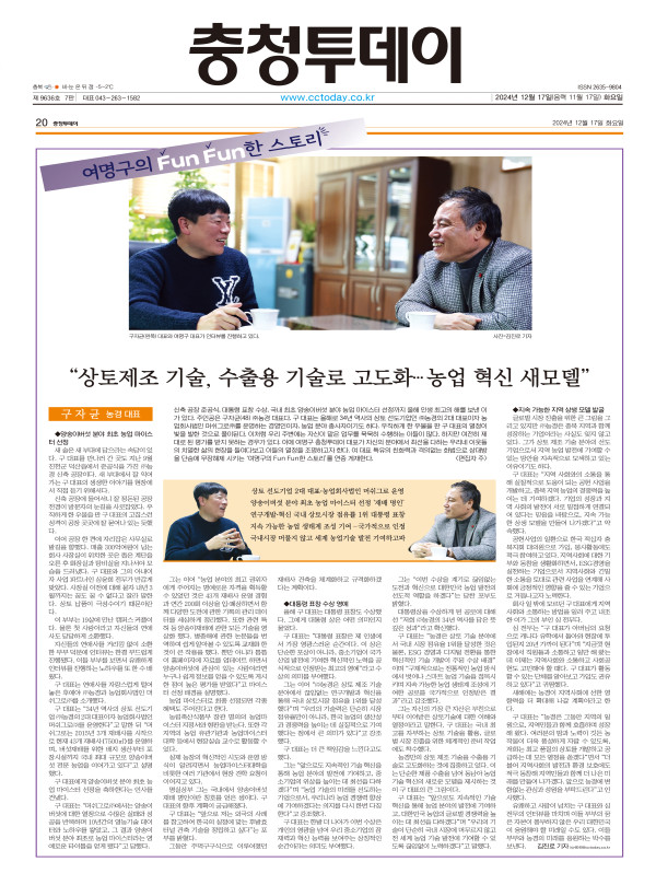 구자균 대표 상토제조 기술, 수출용 기술로 고도화....농업 혁신 새모델 -충청투데이- 등록일2025.11.06 조회수114 충청투데이 - 여명구의 펀펀한 스토리 구자균 대표 상토제조 기술, 수출용 기술로 고도화....농업 혁신 새모델 -충청투데이- 이전글 업체 탐방 (주)농경 - 농업인신문 다음글 농업과 기술의 융합, 상토산업 - |주|농경 구자균 대표 목록